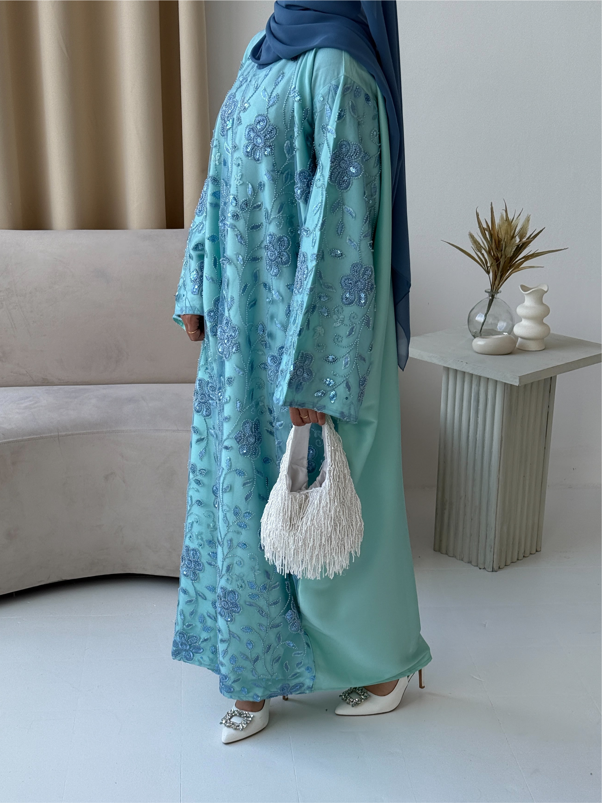 All of our luxury abayas are handmade with intricate embellishment, embroidery and stonework so please handle with care.