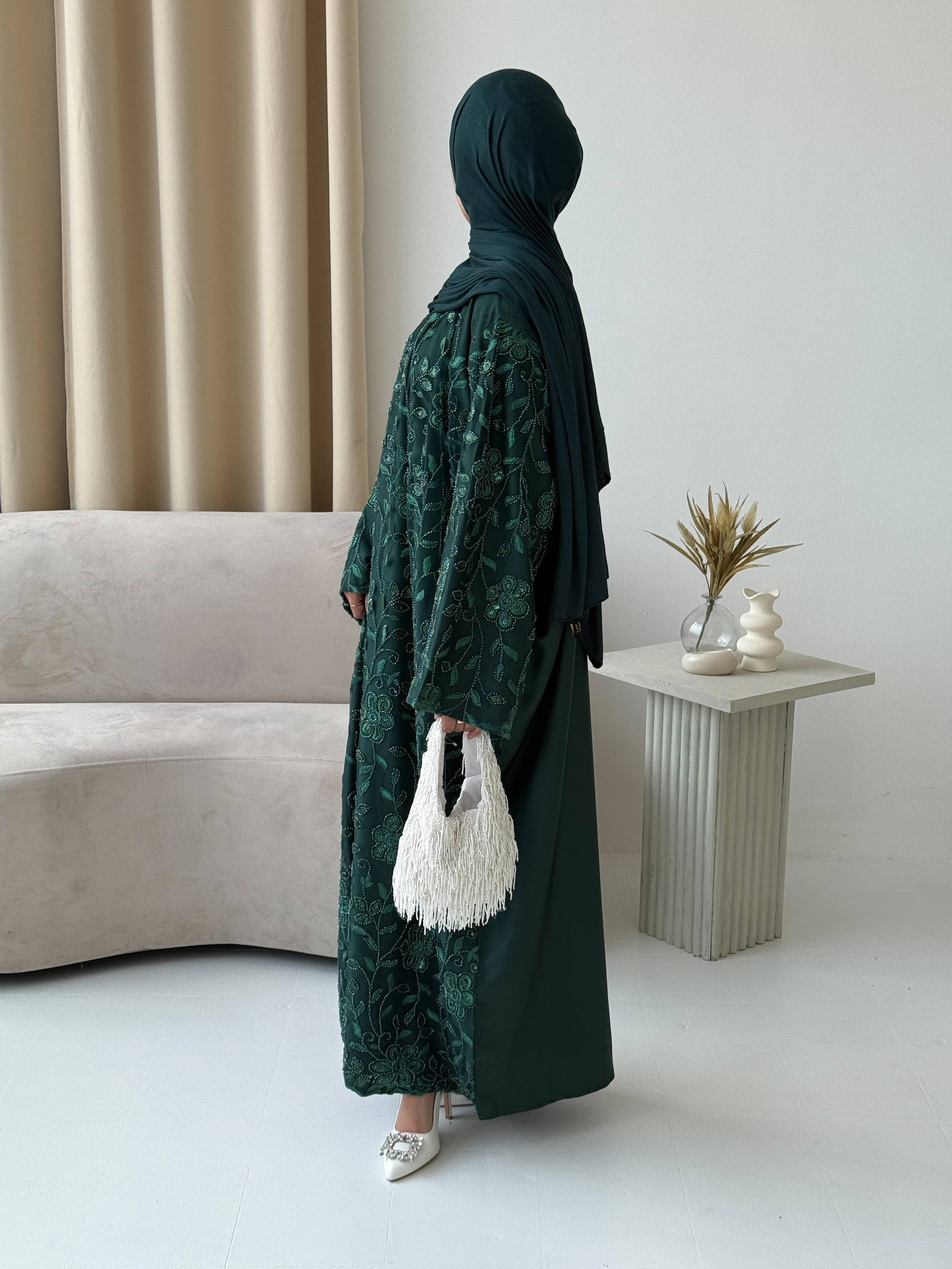 All of our luxury abayas are handmade with intricate embellishment, embroidery and stonework so please handle with care.