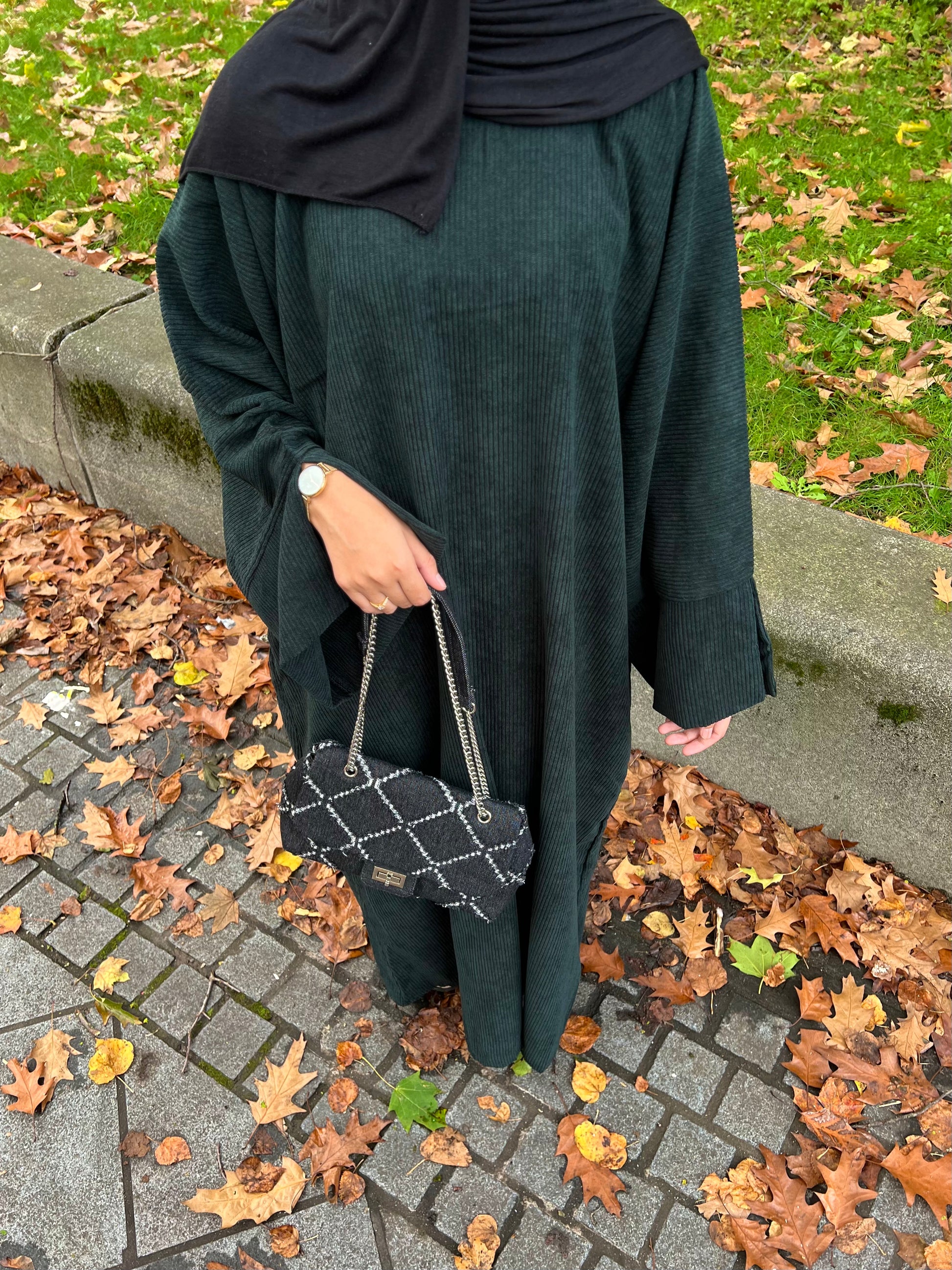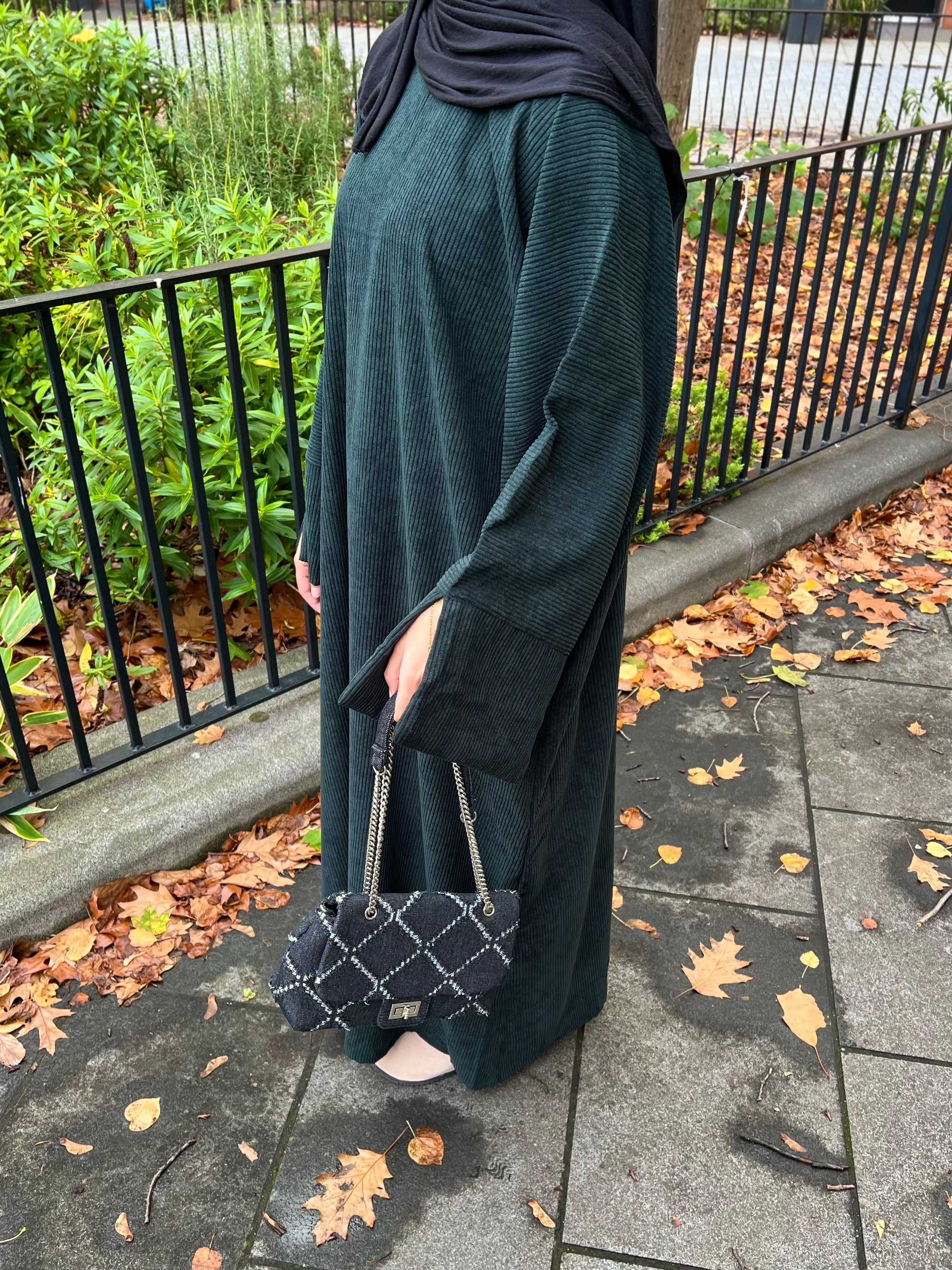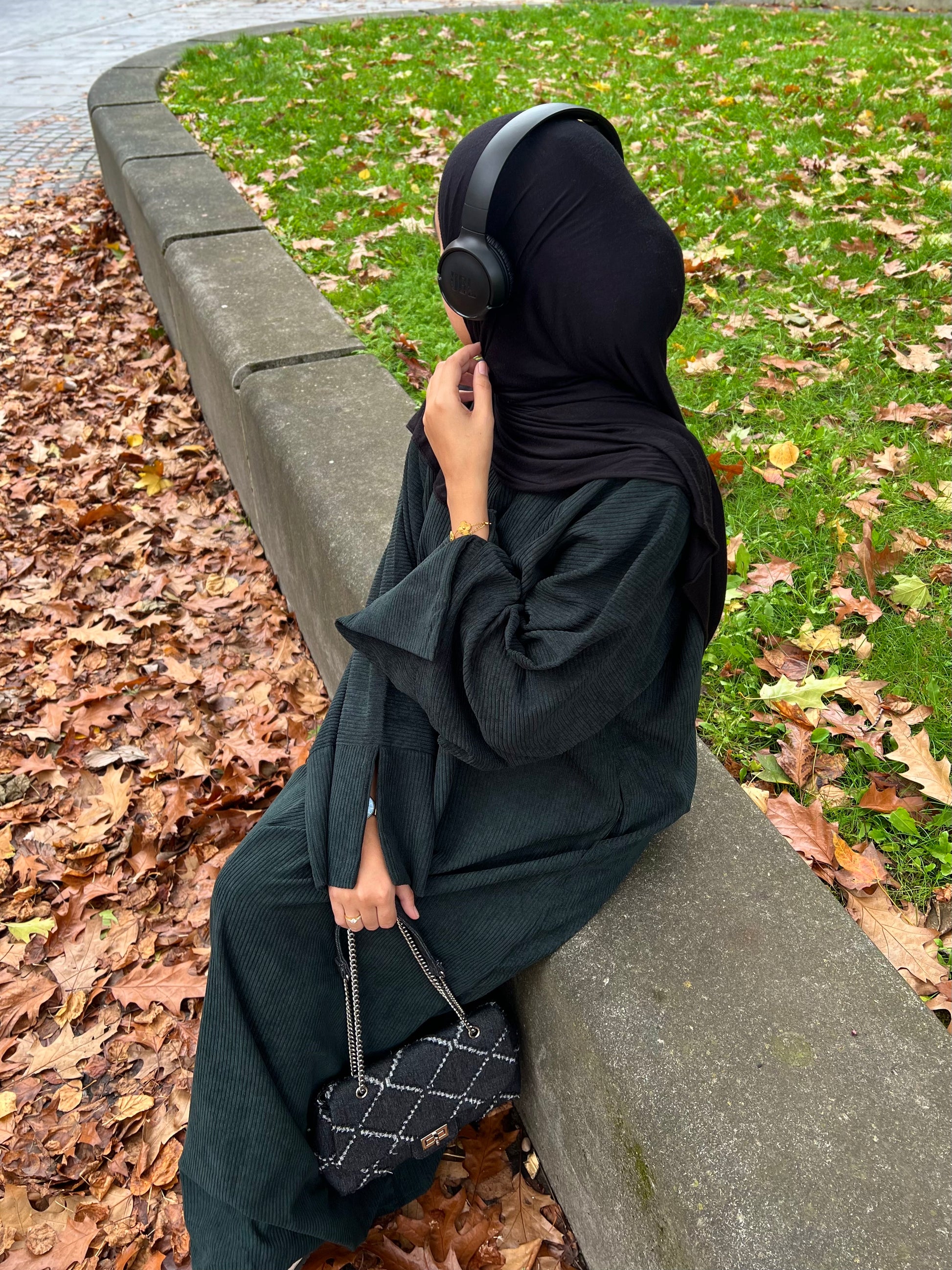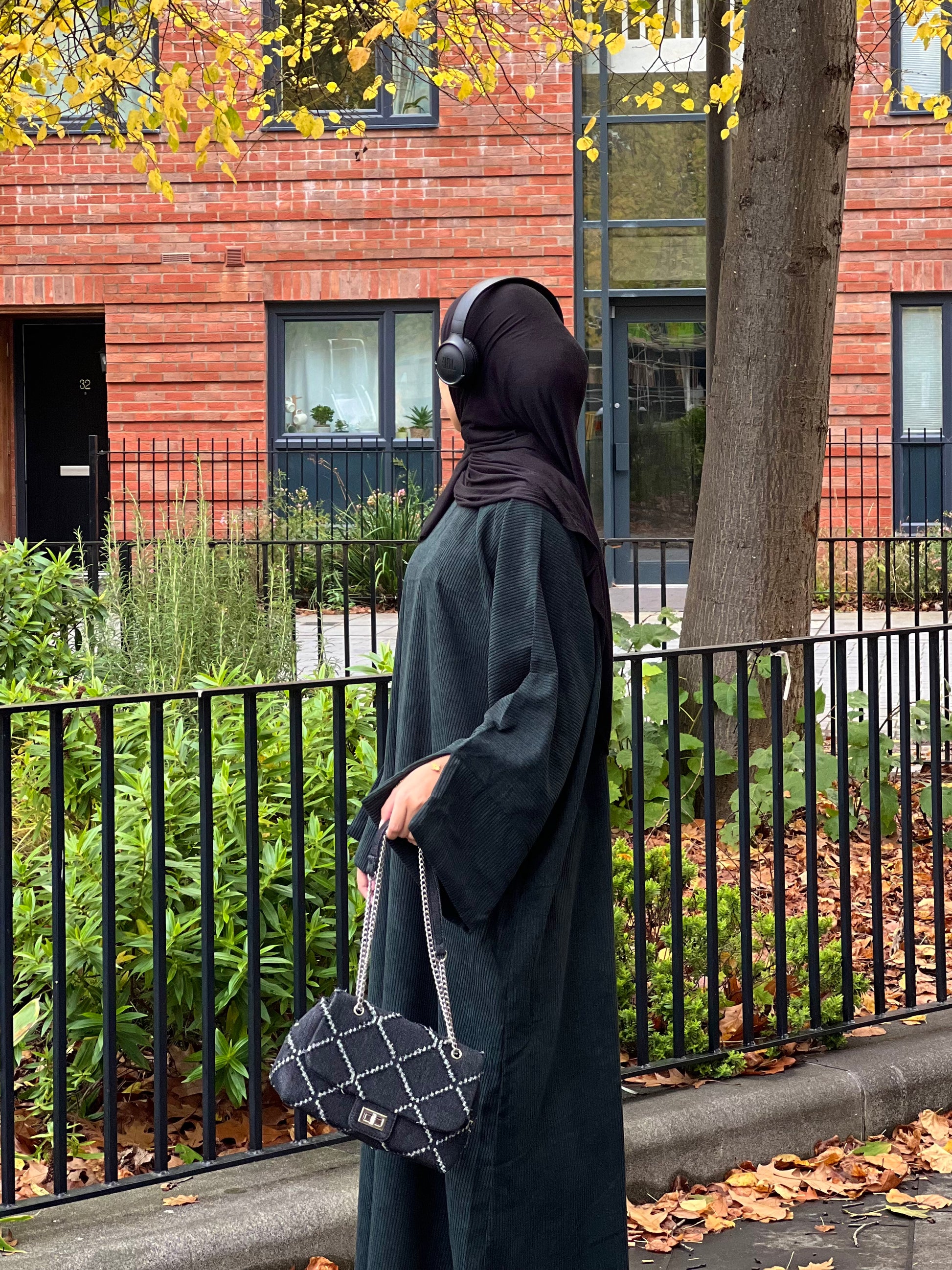 Introducing our new winter abayas. A closed version of our OG corduroy abayas with split sleeves. Comes with pockets either side and a complimentary matching chiffon hijab. Single split at the front of the sleeves. Loose fitting so perfect to wear over thick jumpers or joggers to stay warm this season. The ultimate staple abaya every girl NEEDS in her modest wardrobe this autumn/ winter!