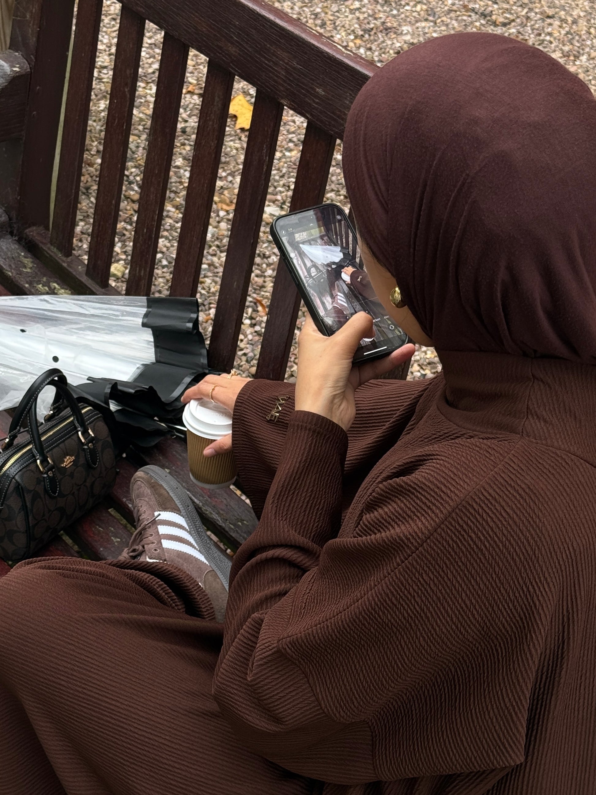 Crafted from a soft, stretchy ribbed fabric, this oversized design features a high polo neck style, offering effortless comfort and a refined silhouette. Featuring deep pockets, a matching complimentary chiffon hijab, and a signature metal WAE logo badge on the right sleeve. Perfect for the seasonal transition into autumn, it provides just the right amount of warmth without feeling heavy.