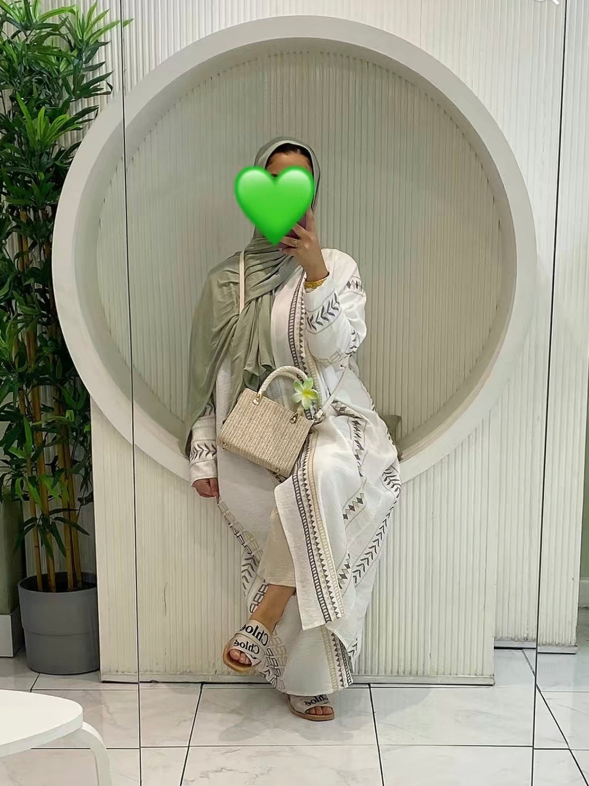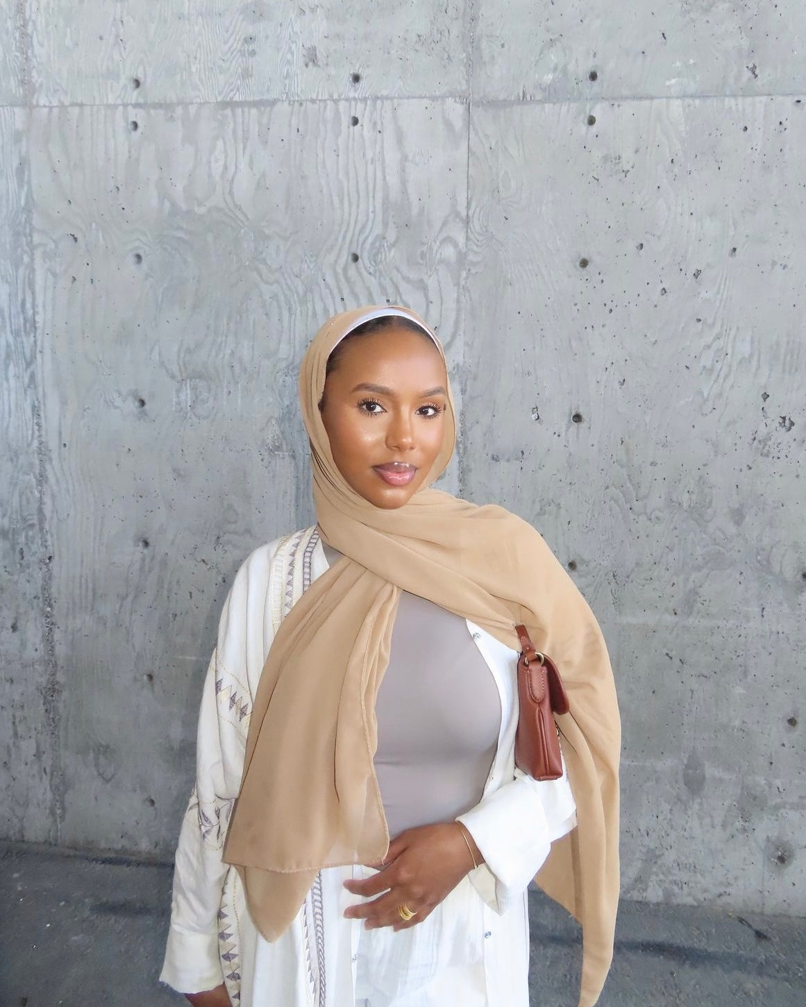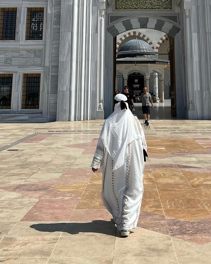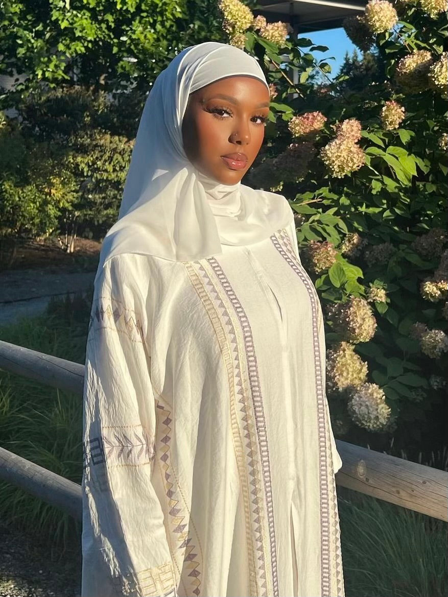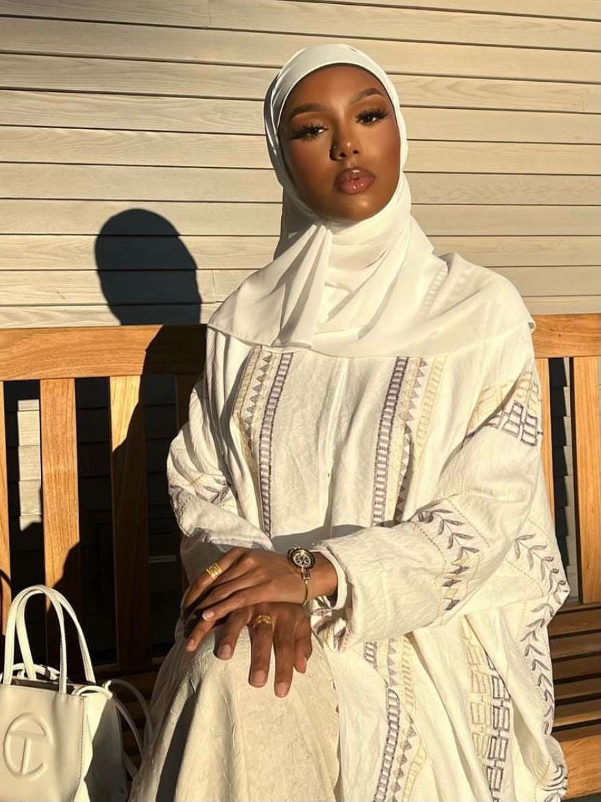 - Complimentary matching white chiffon hijab
