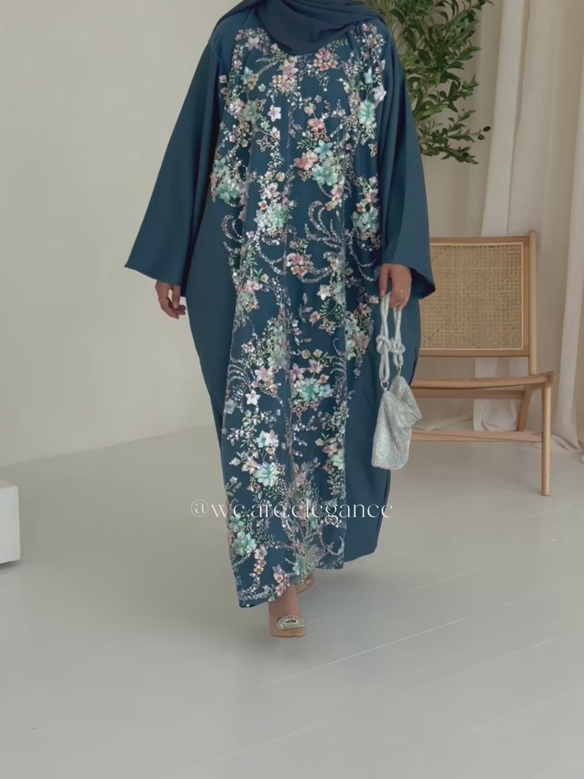 Designed in an oversized fit, this Abaya drapes beautifully, making it perfect for special occasions. It comes with a matching, complementary Korean chiffon hijab.