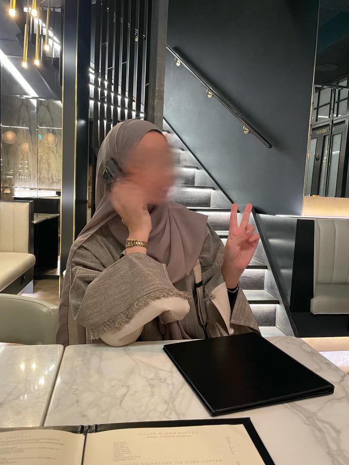 Some images were taken in natural lighting and some in artificial lighting hence the colour appears slighter warmer or cooler. The darker shade we would class this as a taupe brown with slight hints of grey. The truest colour of the abaya is customer picture number 2.